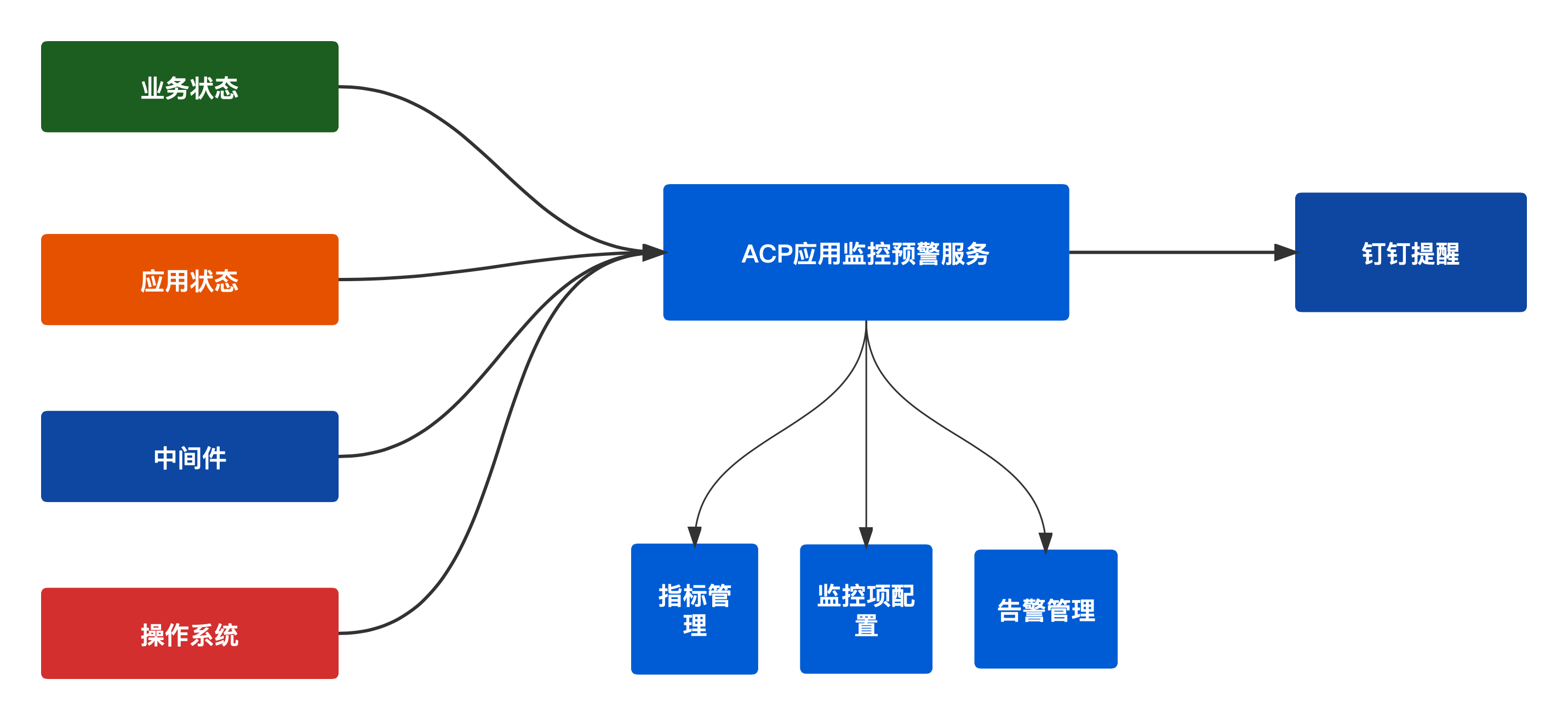 應(yīng)用監(jiān)控預(yù)警是集成從基礎(chǔ)環(huán)境、中間件、應(yīng)用狀態(tài)、業(yè)務(wù)狀態(tài)集成的監(jiān)控預(yù)警平臺(tái),統(tǒng)一的可視化的監(jiān)控端接入, 收集監(jiān)控指標(biāo),與IM工具集成監(jiān)控預(yù)警,便于人員了解運(yùn)行狀態(tài),任務(wù)狀態(tài),運(yùn)行情況。