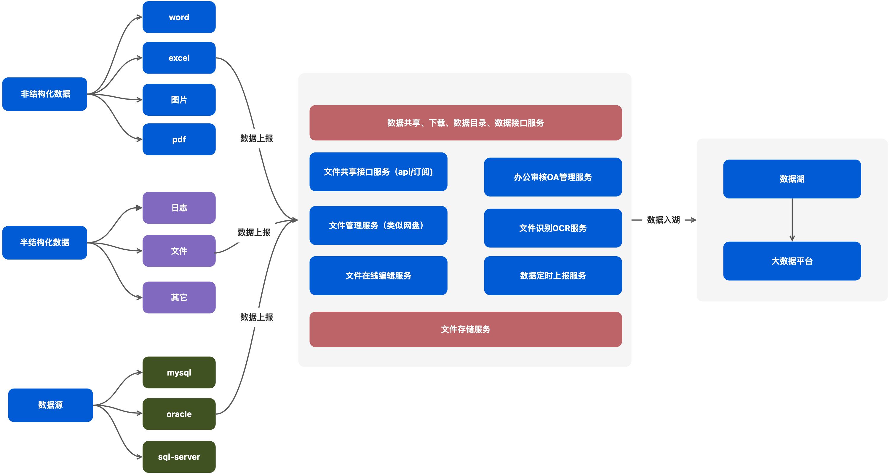 數(shù)據(jù)采集上報(bào)服務(wù),主要針對于政務(wù)、個(gè)人、單位等通用型的通用數(shù)據(jù)采集上報(bào)平臺(tái),用于數(shù)據(jù)入湖的方式之一。此處主要包括非結(jié)構(gòu)化數(shù)據(jù)和半結(jié)構(gòu)化數(shù)據(jù)、結(jié)構(gòu)化數(shù)據(jù)等場景,同時(shí)便于收集多種數(shù)據(jù)來源,同時(shí)包含有資源目錄的規(guī)劃和劃分功能,是數(shù)字化平臺(tái)的前置應(yīng)用,同時(shí)后期加上數(shù)據(jù)上鏈功能。