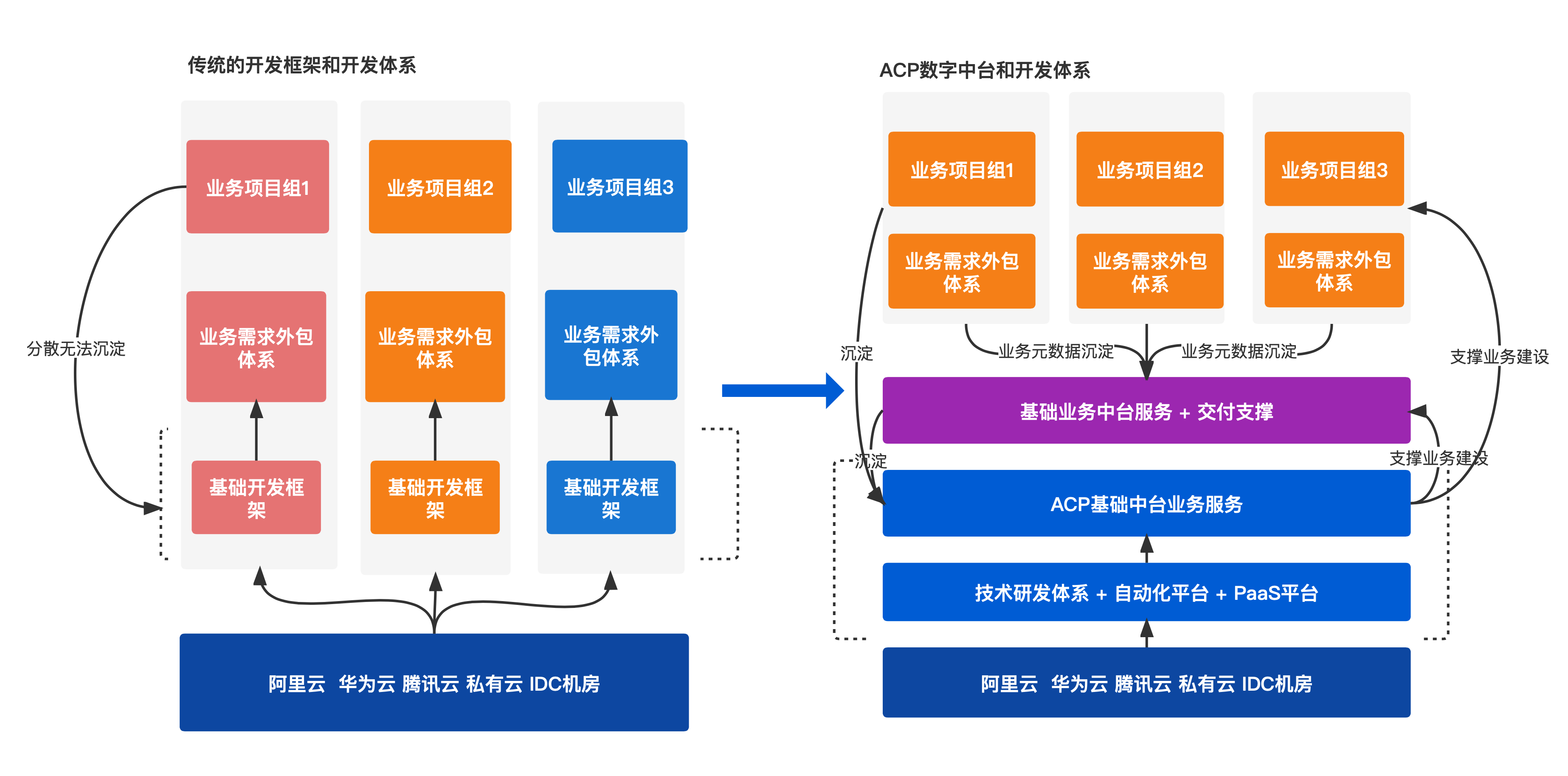 軟件項(xiàng)目開發(fā)轉(zhuǎn)換成行業(yè)產(chǎn)品型研發(fā),即輸出項(xiàng)目的同時(shí)輸出中臺(tái)產(chǎn)品型服務(wù)